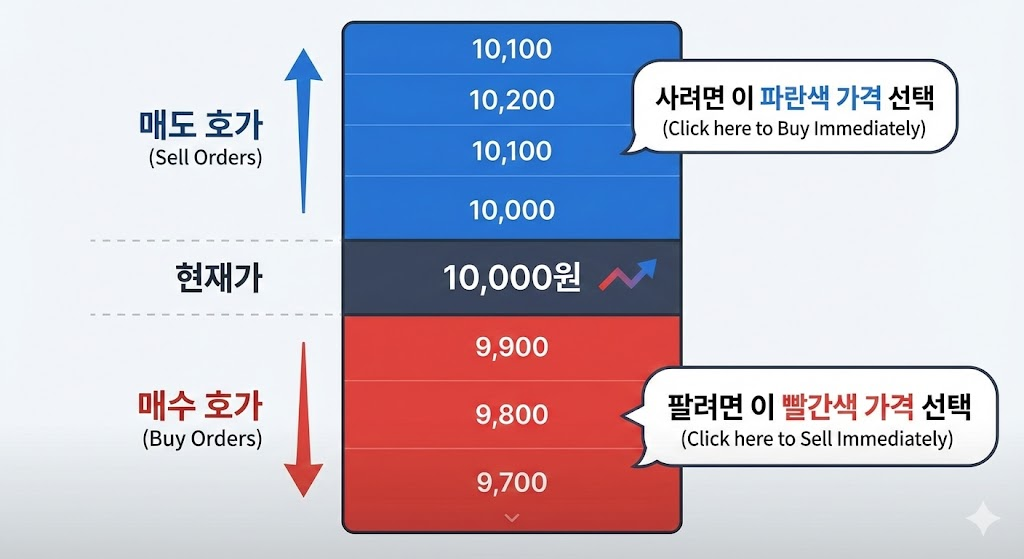 하지만 막상 매수 버튼을 누르면 빨갛고 파란 숫자가 가득한 화면(호가창) 때문에 당황하기 쉽습니다. "도대체 얼마에 사야 하는 거야?", "시장가는 뭐고 지정가는 뭐지?" 고민하다가 타이밍을 놓치거나, 실수로 비싸게 사는 경우도 많죠.